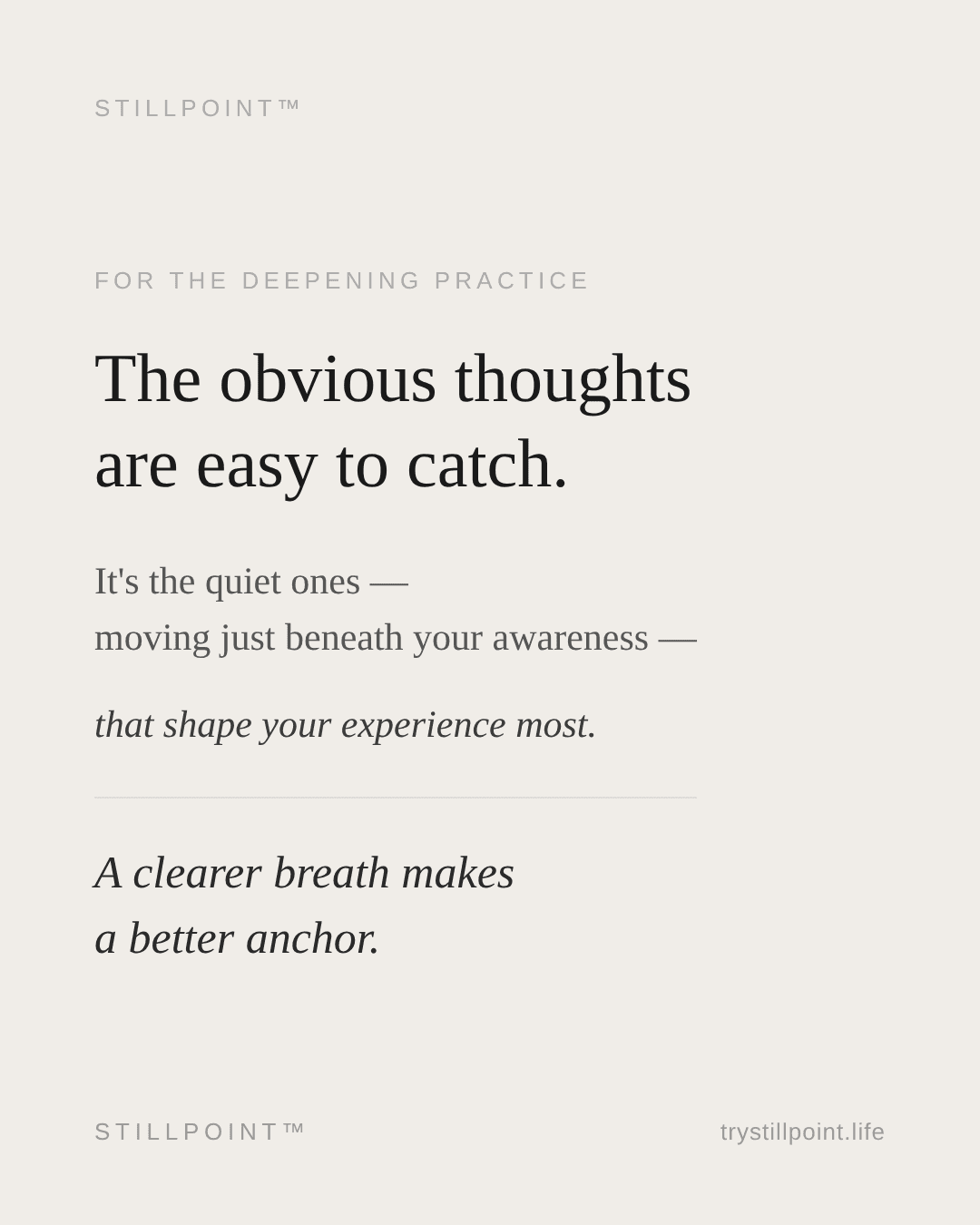 Meditation is simple — but staying with the breath isn't. After years of practice, I kept asking: what if the breath were simply easier to feel? StillPoint is the answer I built — a small, gentle way to amplify awareness at its source, so attention can rest more steadily on the breath and be less easily carried off by wandering thoughts.